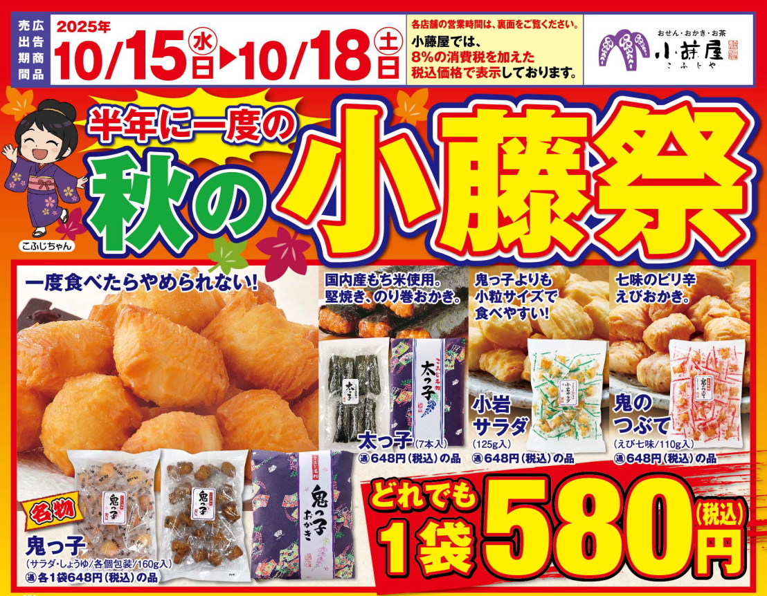 半年に一度の秋の小藤祭! 10月15日(水)~18日(土)まで 4日間開催!