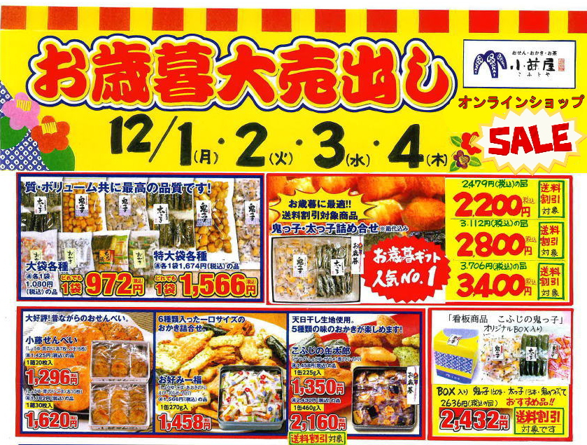 お歳暮大売り出し 12月1日(月)~4日(木)まで 4日間開催!
