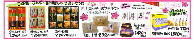 ![]() 鬼っ子・太っ子詰め合わせ 鬼っ子大袋220g・太っ子特大袋22本入) 通常価格3,133円 SALE価格2,955円(税込) |