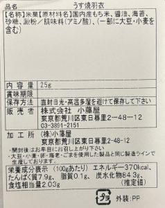 ウスヤキ羽衣 2022年7月12日 最終更新日時 : 2026年3月6日 kofujichan ウスヤキ羽衣 - 1 2 3 4 5 6 7 8 9 10 お醤油味の薄焼きあられに海苔をちりばて 食べやすい大きさです