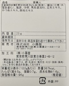 京美人 2022年7月13日 最終更新日時 : 2026年3月6日 kofujichan 京美人 - 1 2 3 4 5 6 7 8 9 10 細く焼いたあられに海苔を巻いたやわらかめのおかきです 当店で一番細い海苔巻きです